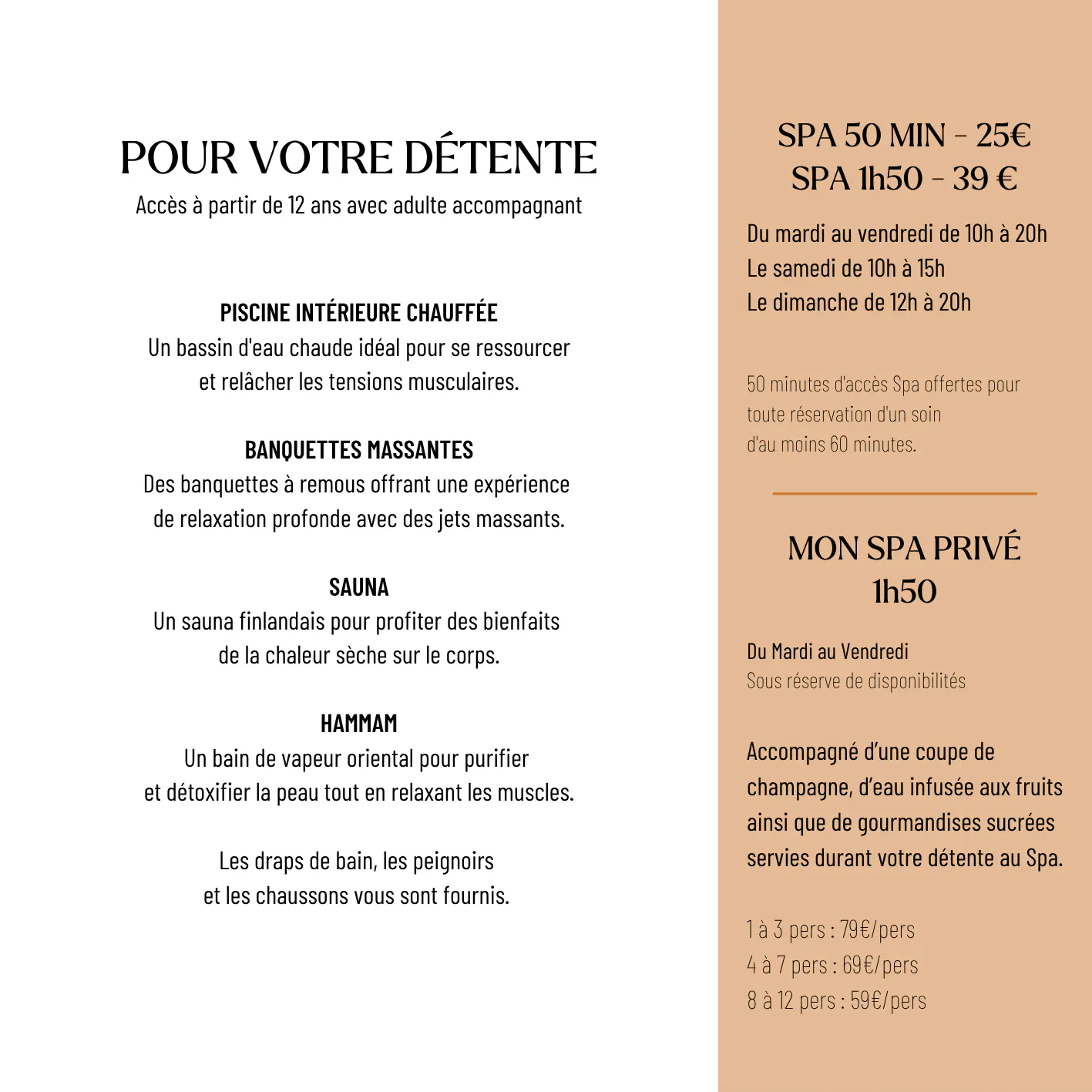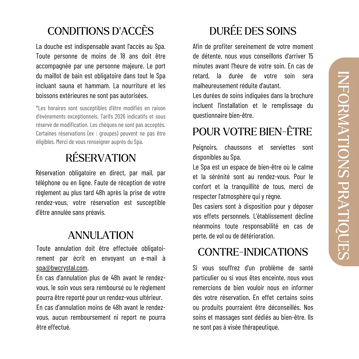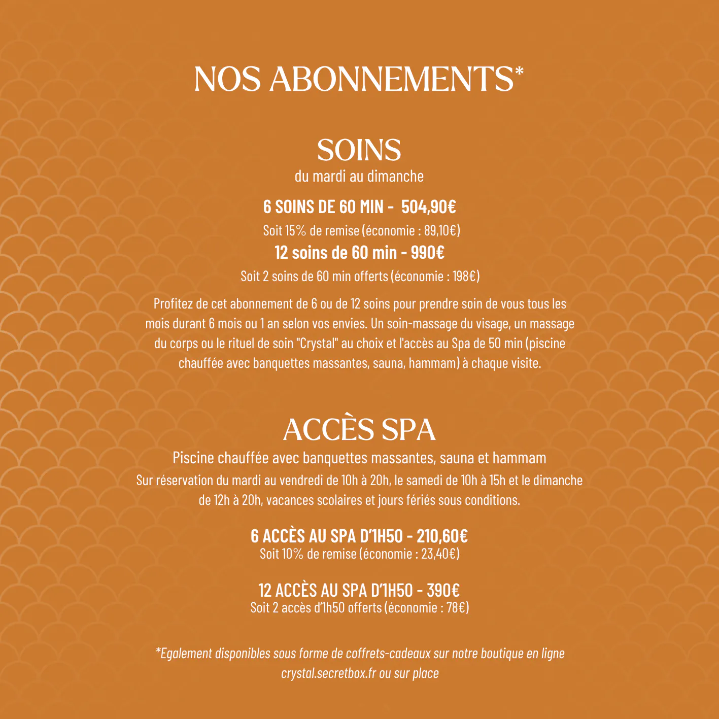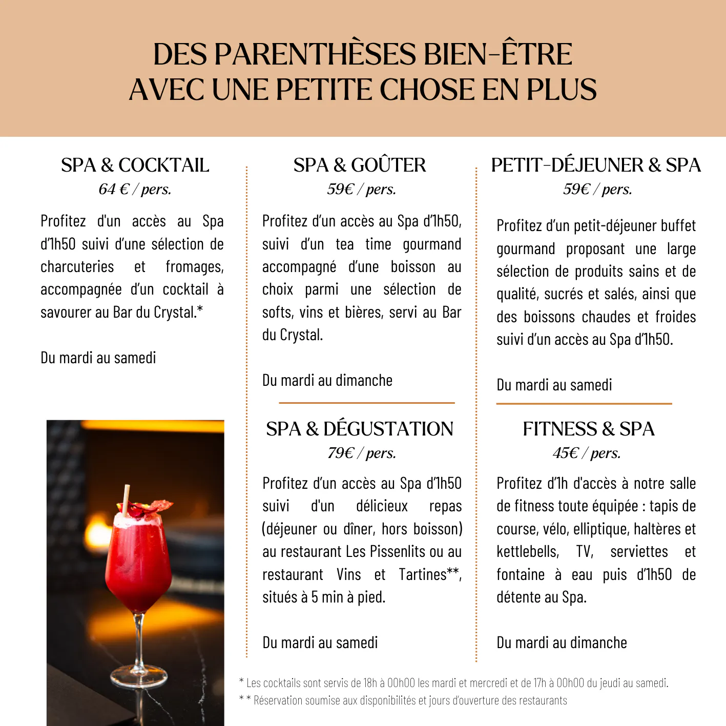 Sur place : Accueil du Spa ou à la Réception de l'hôtel
