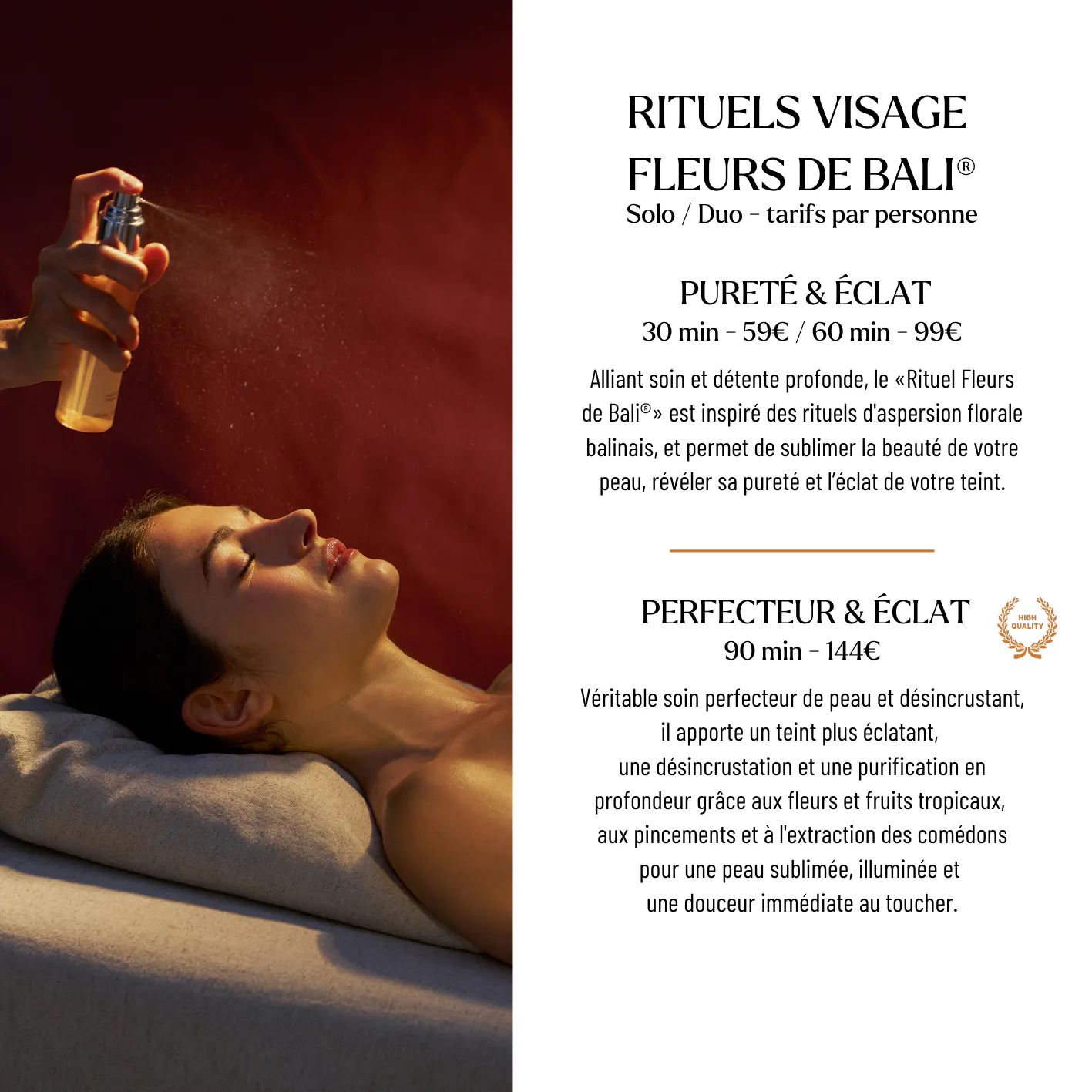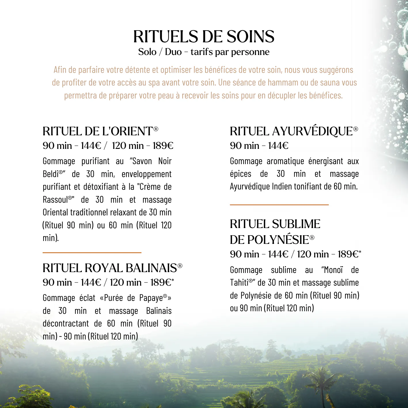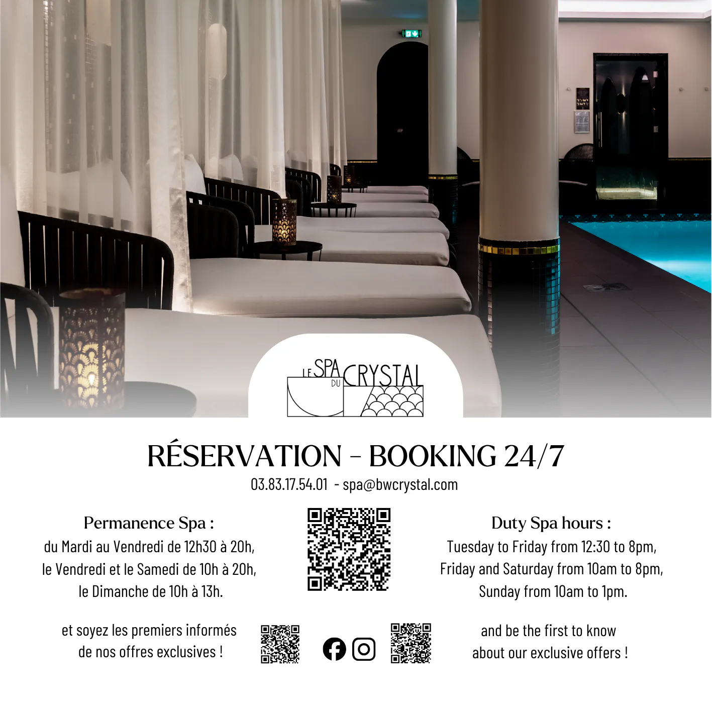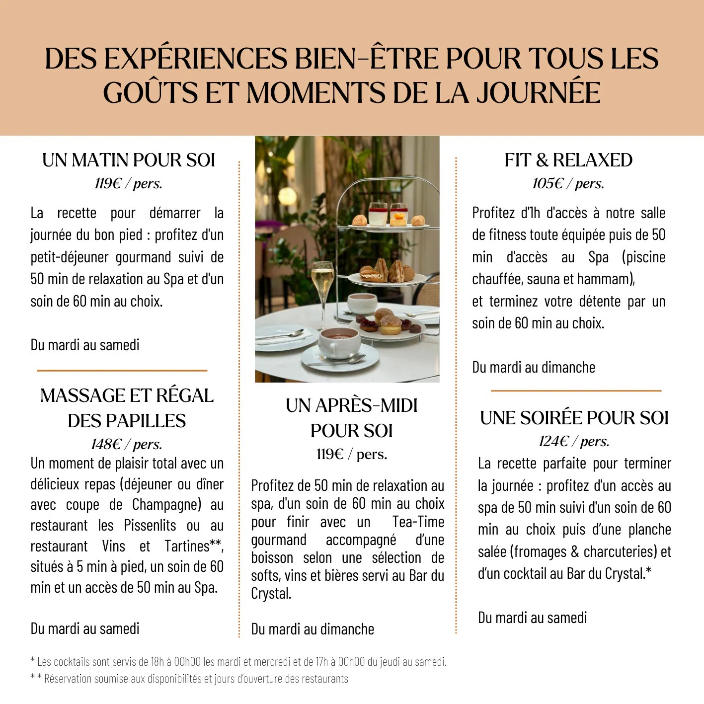 Sur place : Accueil du Spa ou à la Réception de l'hôtel