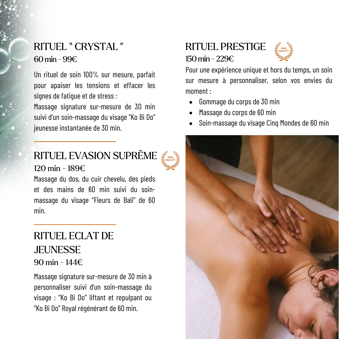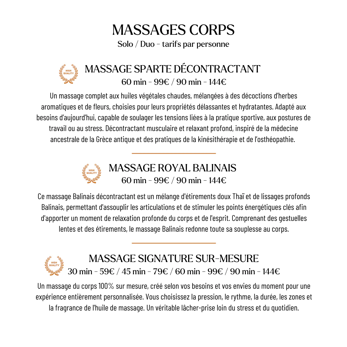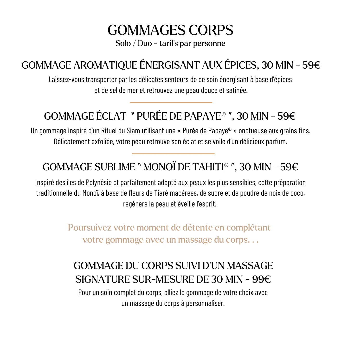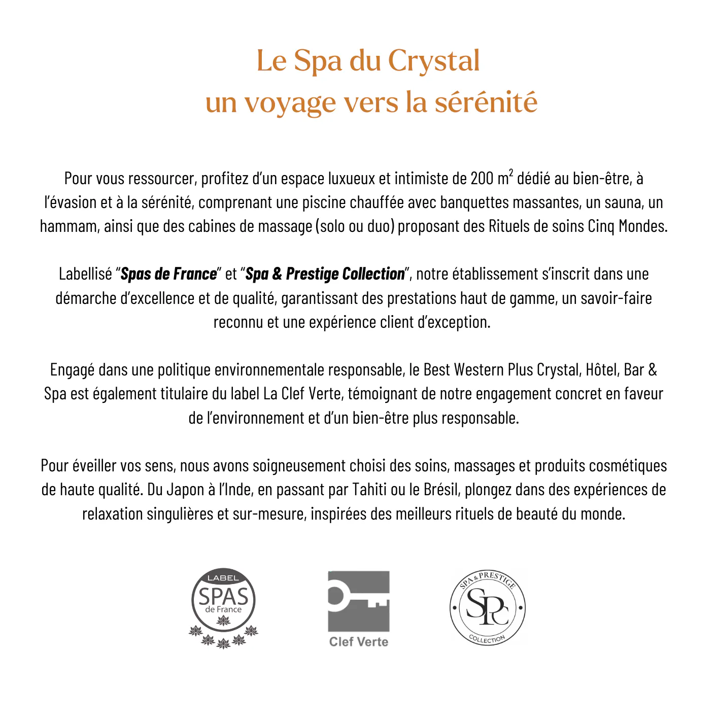 Sur place : Accueil du Spa ou à la Réception de l'hôtel